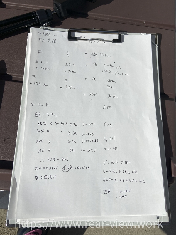 今回サスの交換やATF、デフオイルなど色々交換しましたのでこんなシートを作ってみました。