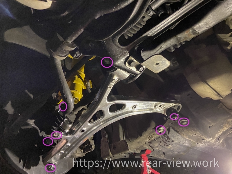 取り付けます。コツはボールジョイントはジャッキやハンマーで押し上げるようなイメージ。車体後側の部分を軽く固定してからだとスムーズに作業ができました。締め付け参考トルクを載せておきます。