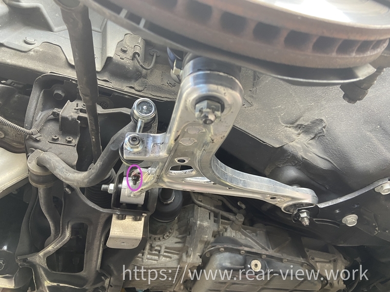 新しいロアアームにスタビリンク、ボールジョイントを取り付けます。あとから微調整しますので軽くナットで締める程度でOK。